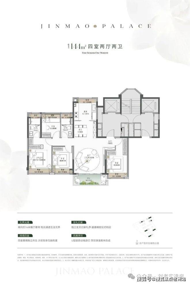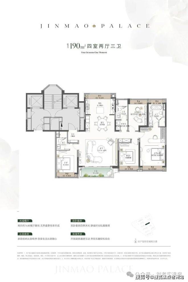 ● 建面约190㎡4房:楼王位置的顶奢大平层,同价位段在杨浦只能买到约120㎡3房!