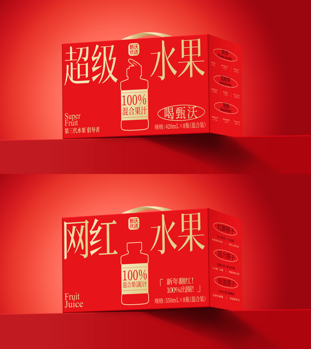 值得一提的是,为适配新春消费场景,甄沃优选还推出了“网红水果新春礼盒装”(550mLx8瓶混合装),打造新春档的健康消费新选择。