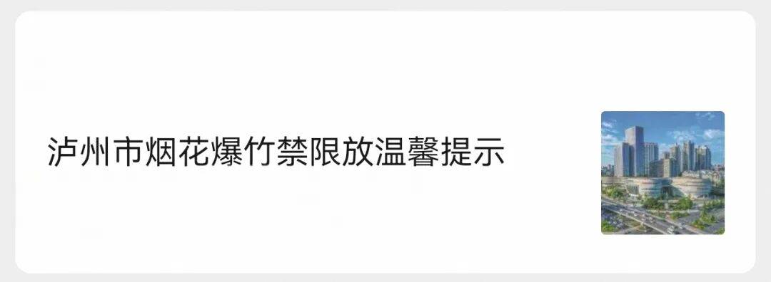 近日,泸州公安发布了关于烟花爆竹禁限放的温馨提示,汇总了各区县人民政府的烟花爆竹管控通告,明确了烟花爆竹禁限放区域,具体如下: