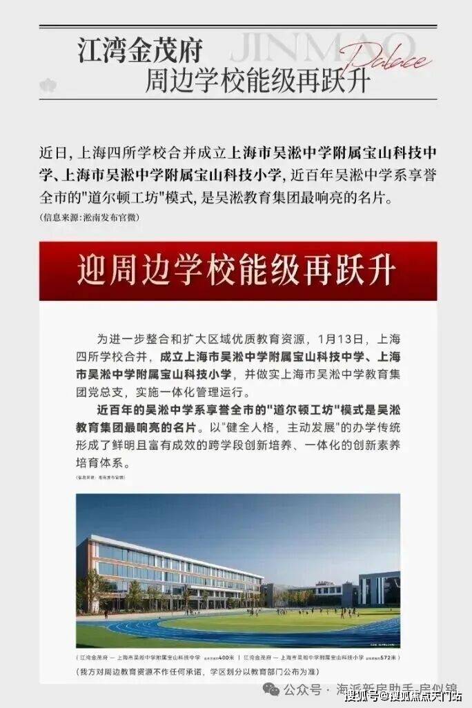 除了肉眼可见的交通利好,周边的教育也迎来利好。2026年1月13日,区域教育迎来里程碑事件:上海四所学校合并,成立上海市吴淞中学附属宝山科技中学、上海市吴淞中学附属宝山科技小学,并做实上海市吴淞中学教育集团党总支,实施一体化管理运行。